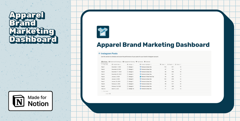 A Notion template to help you grow your apparel brand by tracking what content actually works.